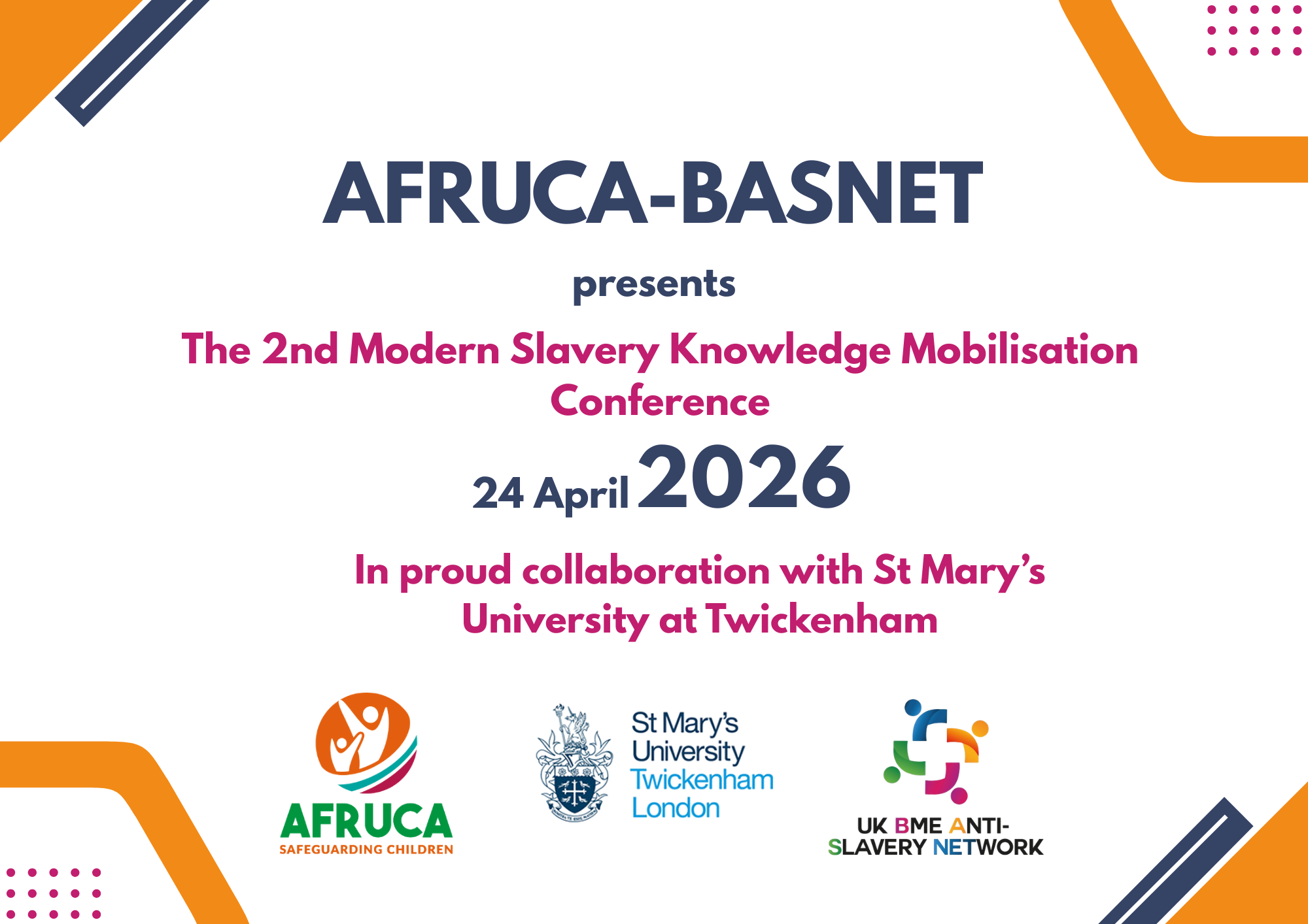 We are pleased to hold the second BASNET Knowledge Mobilisation Conference, taking place on Friday 24 April 2026 at The Exchange, St Mary's University, Twickenham. This will be an afternoon dedicated to showcasing the latest research emerging from our network of grassroots members and modern slavery survivors, with support from our academic partners.