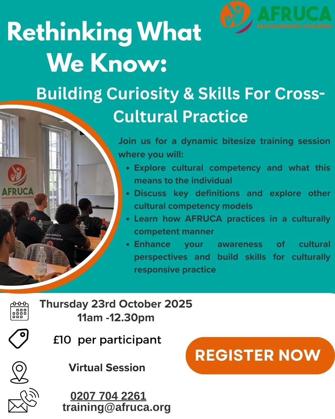 AFRUCA invites you to a dynamic bitesize training session exploring cultural competency in safeguarding practice.